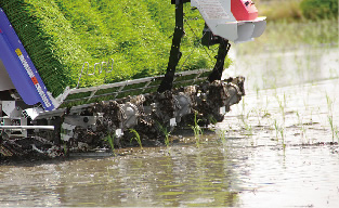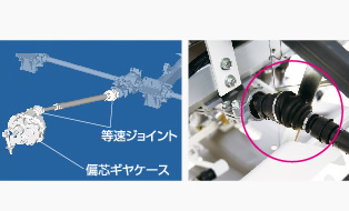 植付部の無駄な動きを抑え、滑らかな回転動力を伝えます。植付部の振動を抑えると共に、浅田~深田でのほ場適応性が向上しました。