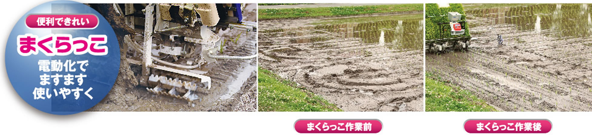 かごロータの配列を適正化、高速作業時の水や泥押しを減少させます。またほ場内移動時もまくらっこでならし作業ができます。