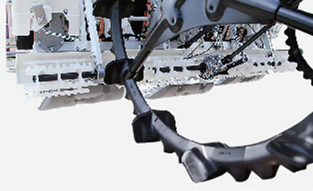 旋回時のロータによる泥はねを防ぎ、駆動音も静かで快適です。