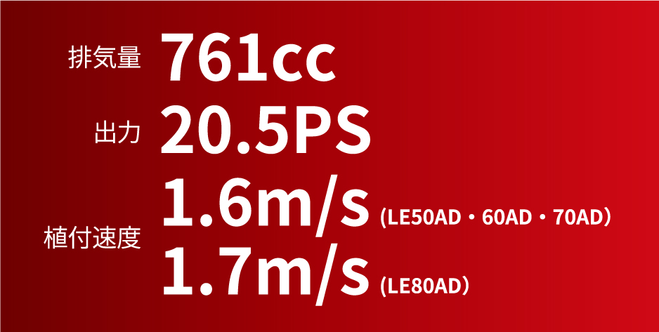 油圧ポンプをエンジンに直装することで、メンテナンスフリー化と安定した油圧供給を実現、植付作業を強力にサポートします。