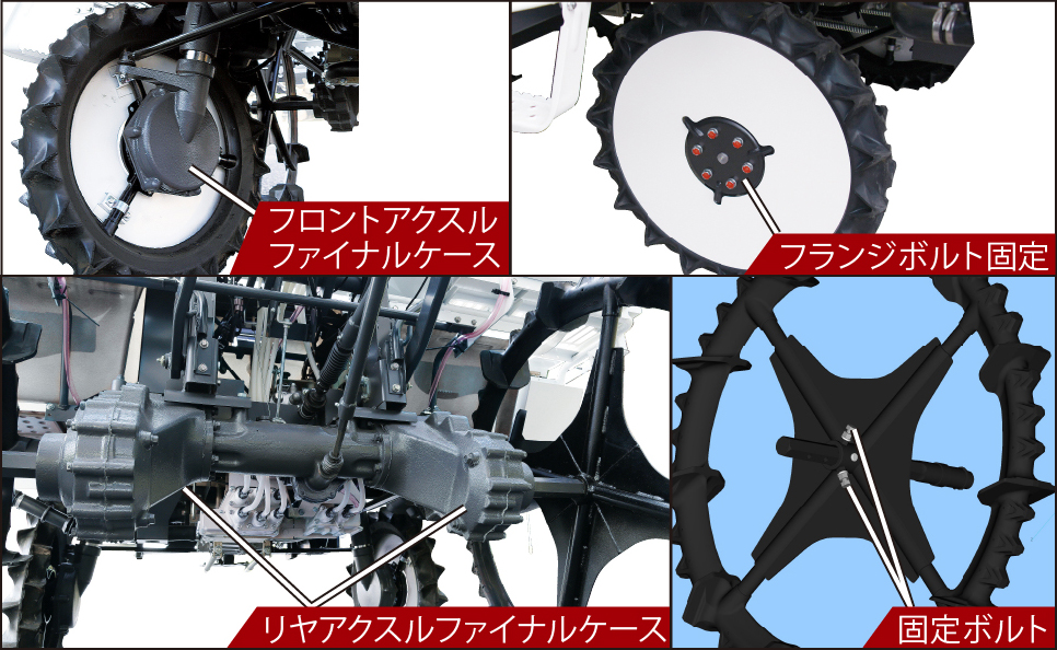 ・フロントアクスルファイナルケースを8条専用化し、耐久性に優れています。