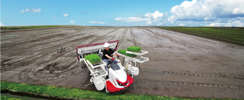旋回アップ機能を使用することで、変形田や枕地作業でも植付部の上げ忘れがなく、安心して作業できます。