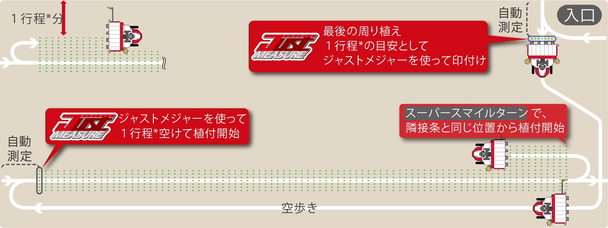 ④1行程分*を計測して自動で植付開始