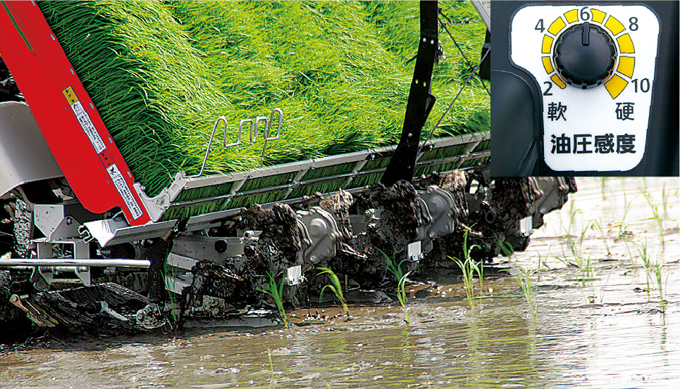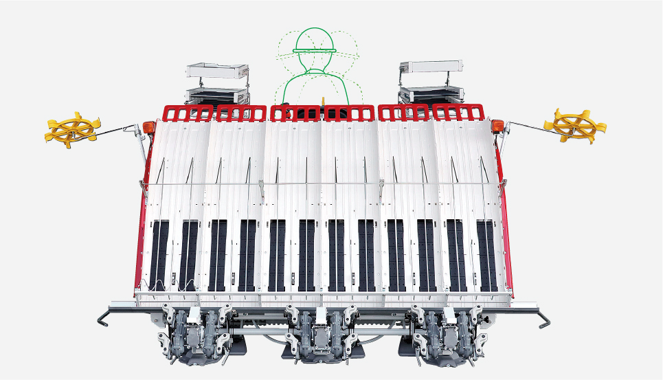高速作業や疎植植付でもスムーズ、安定した植付性能を発揮できる各種装備