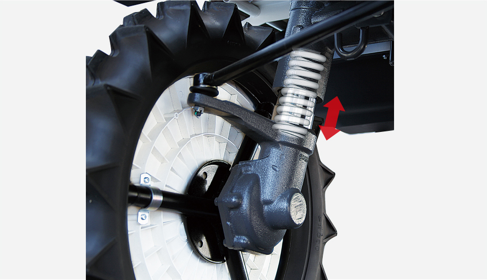また、ほ場の出入り時も前輪がしっかり接地し、スリップも少なく安心です。 -