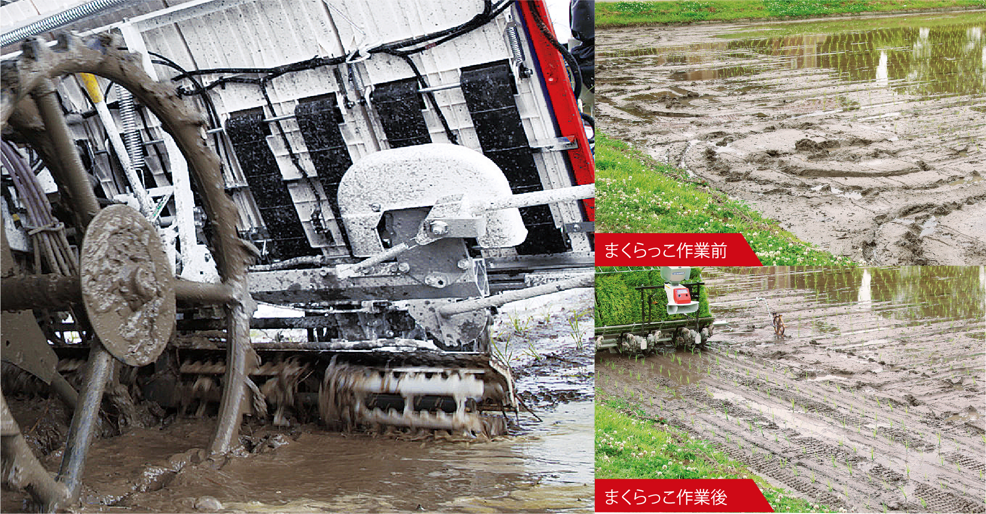 ならします。※まくらっこは無代かきほ場での使用を目的とした機能ではありません。また写真は比較のため、ほ場表面を荒れた状態にして作業しています。