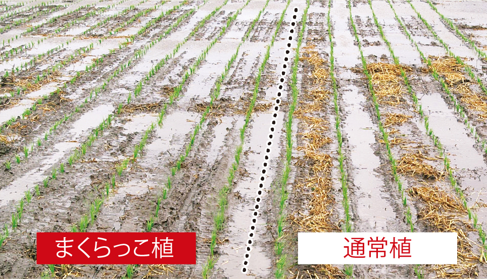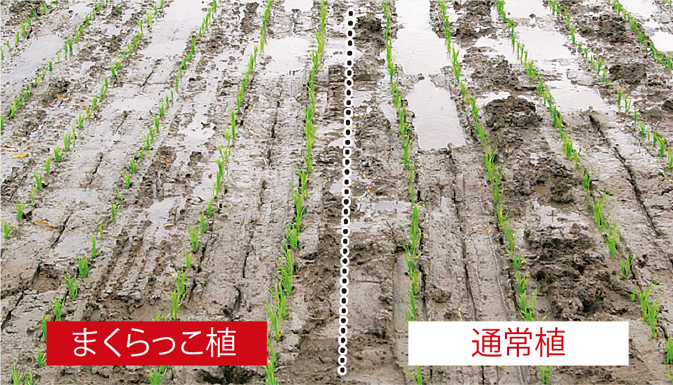 枕地ならしはもちろん、ほ場全面をまくらっこを使いながら植付けることで、きれいな仕上がりに。