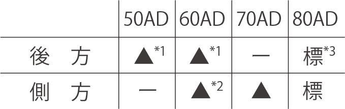 標…標準装備 ▲…オプション別売品