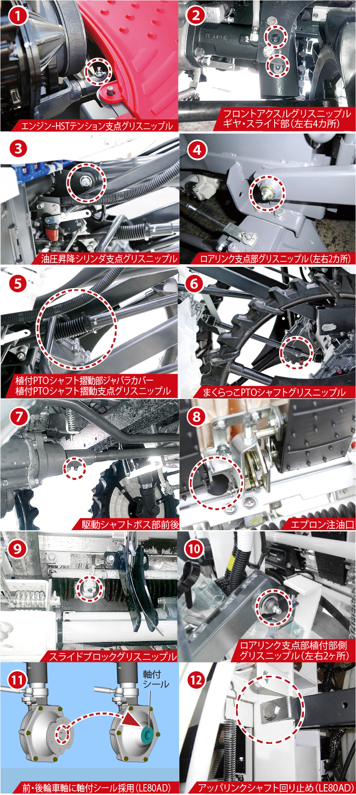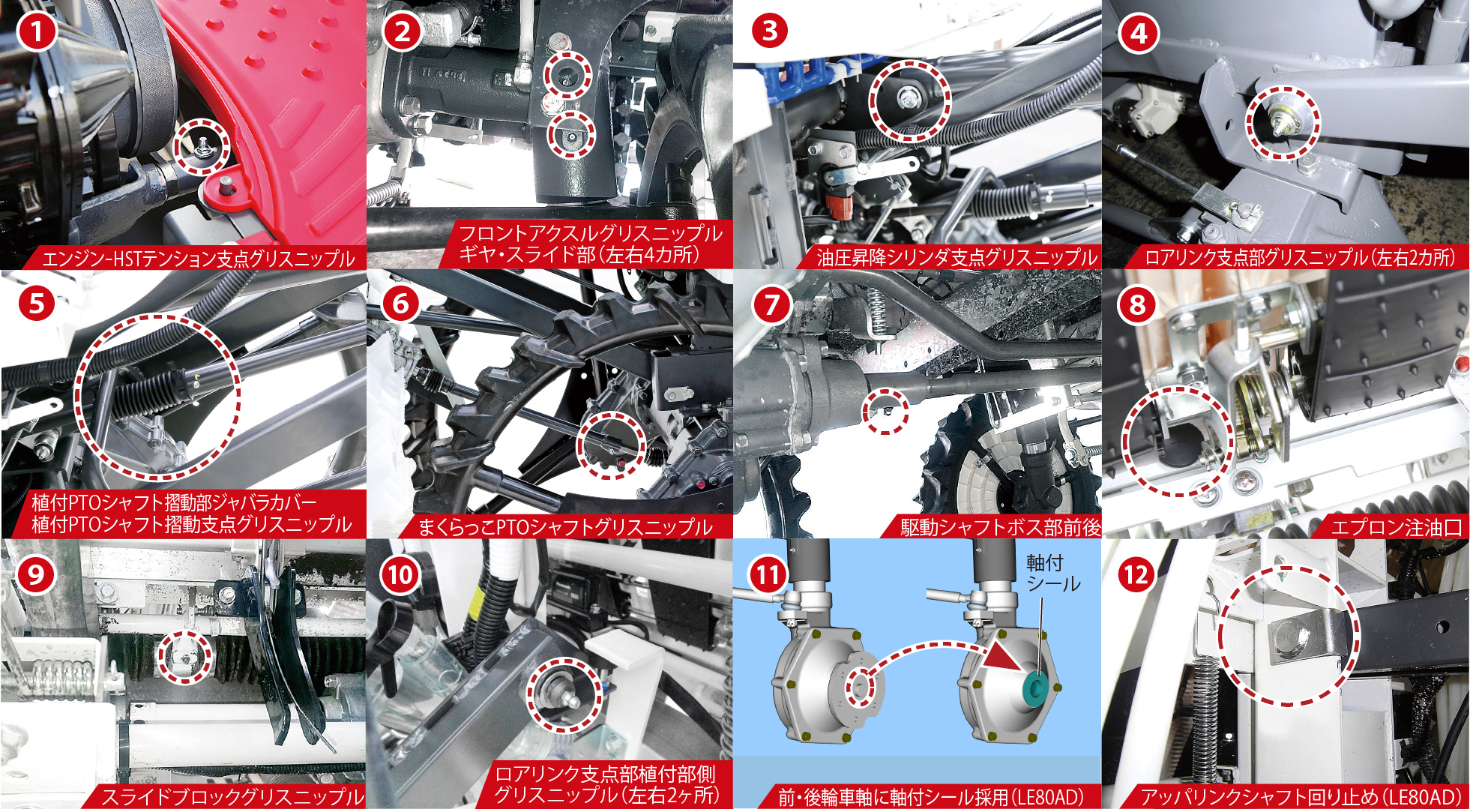 多くの注油・注脂箇所、耐久性に優れたシールなど、メンテナンス性に優れています。