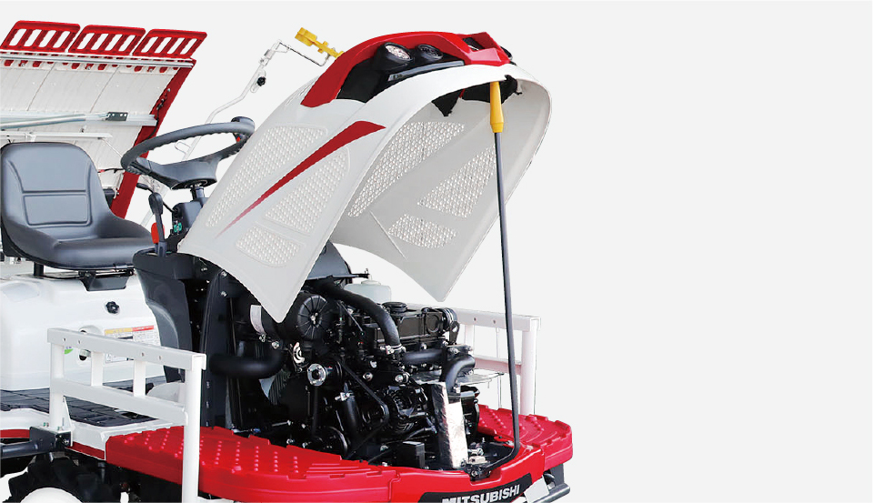 工具を使わずにボンネットがワンタッチでオープンできるので、オイル量の点検、エアクリーナ清掃など、エンジン周りの日常点検が簡単にできます。