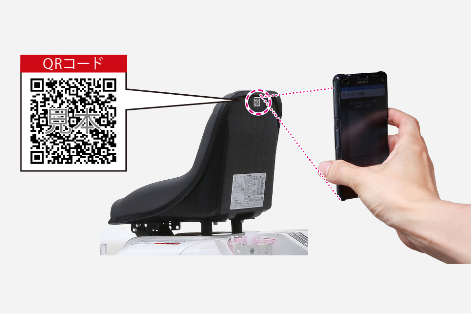 座席後方に貼ってあるQRコードをスマートフォンで読み取ることで※、メンテナンス情報を、スマートフォン上で確認できます。