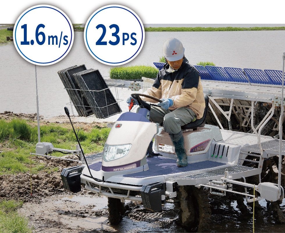 低振動・低騒音の水冷3気筒ディーゼルエンジン搭載。高トルクかつ高出力で粘り強く、低回転から力強いパワーを発揮します。エンジンは機体中央に配置しており、理想的な前後バランスです。