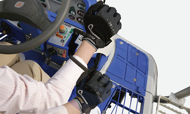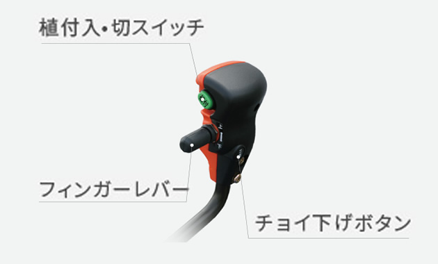 HSTレバー上のフィンガーレバーで、ワンタッチで植付部の上下が可能。