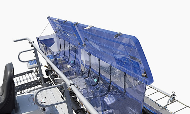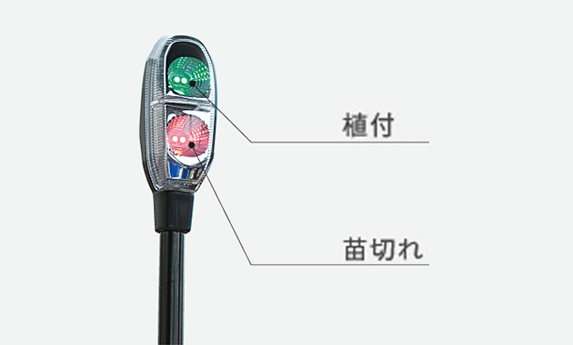 センタポールには苗の減少や植付クラッチの入切が運転席から一目で確認できるLED式センタマスコットを採用しました。