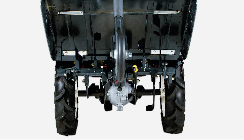 ワンタッチ脱着方式で、わずらわしい作業機の切替もラクラク。工具を使わず、一人で簡単に行えます。
