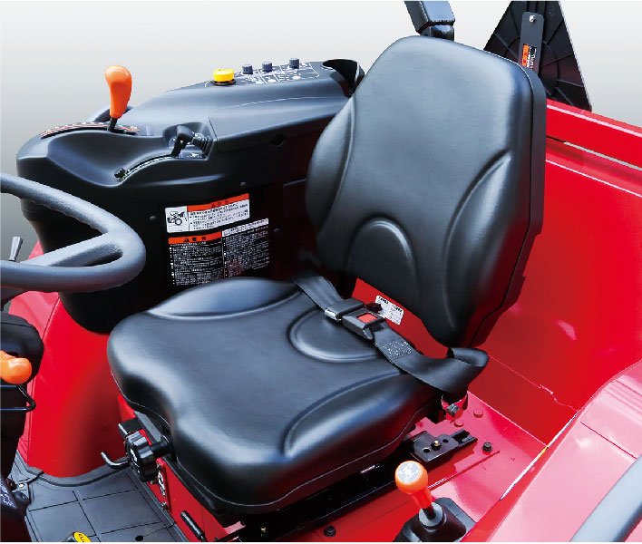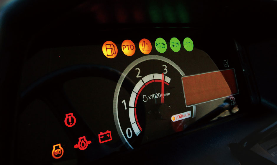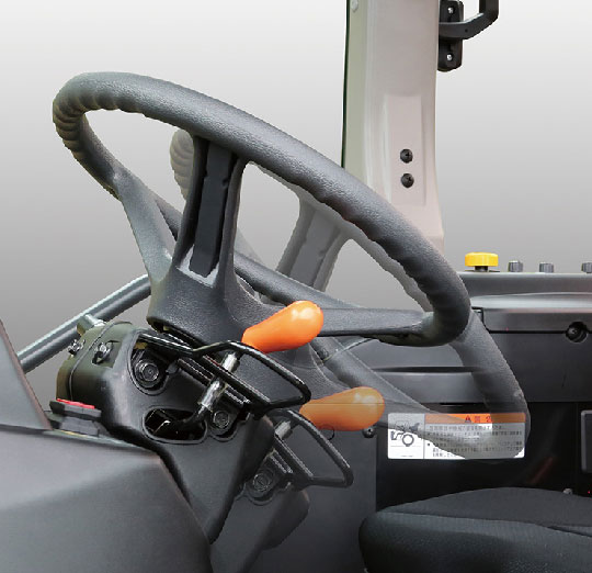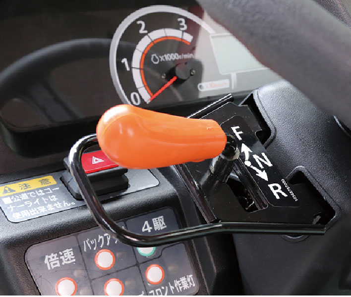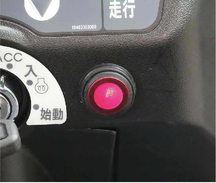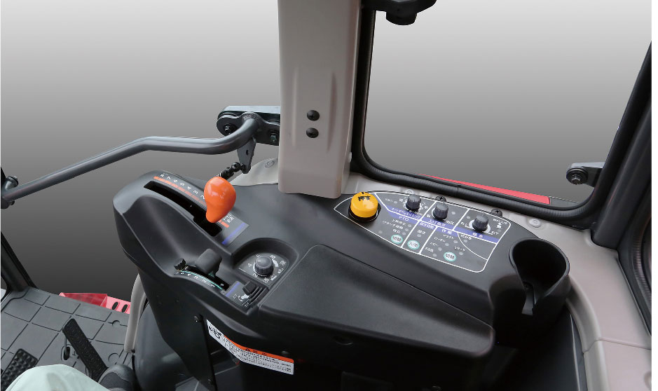 クラッチを踏んでPTOレバーをニュートラルにする必要がなく、ボタン一つでPTOの動力の「入・切」が簡単にできるPTOボタンを装備しました。作業が終われば、ボタンを押してPTO停止。