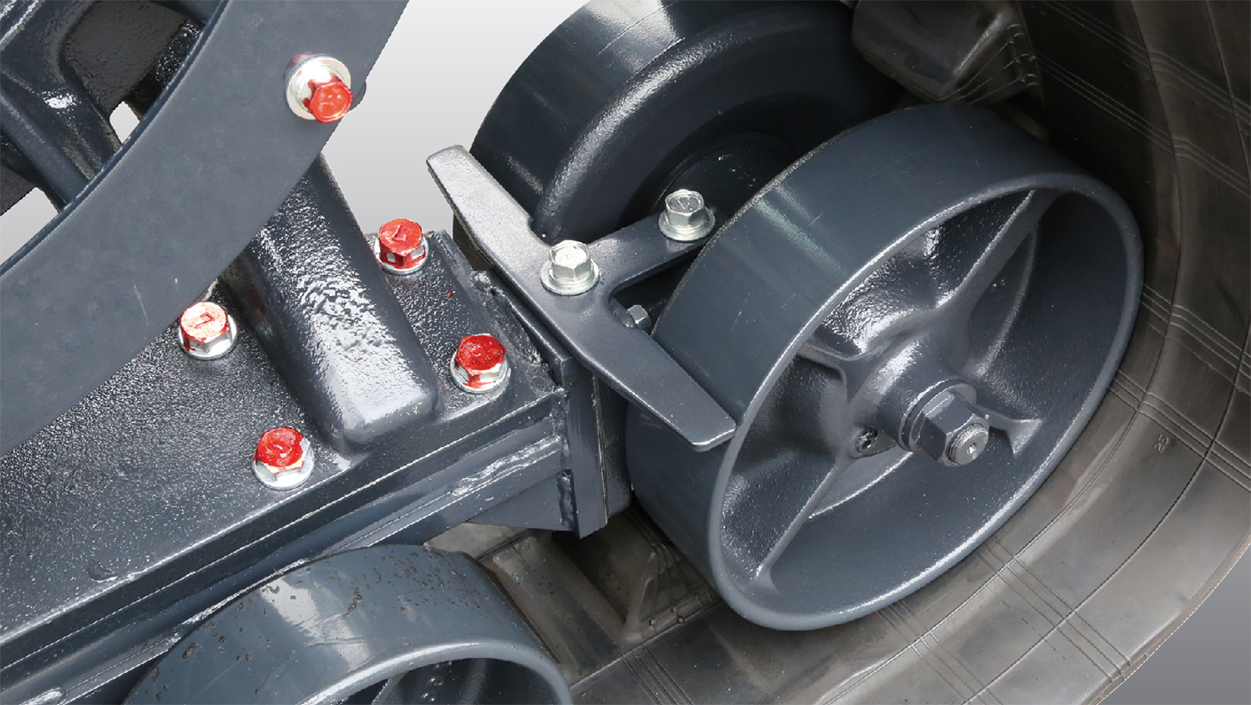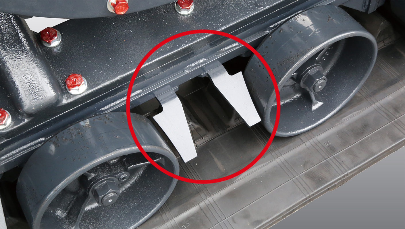 転輪・アイドラにはスクレーパを標準装備。泥の付着を軽減し、クローラの保護にも役立ちます。