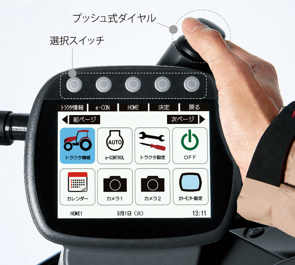 モニター操作は選択スイッチとプッシュ式ダイヤルで画面の切換や選択が簡単・素早く行えます。