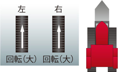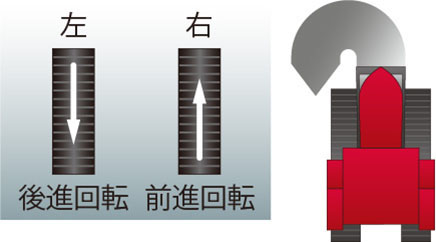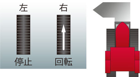 内側クローラを逆回転させて旋回