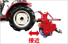 トラクタ本体とロータリを「接近」させることで、最適な前後バランスを実現。超低速と併せほ場の出入りもスムーズで、湿田作業時もヘッドアップを抑え安定した作業が可能です。