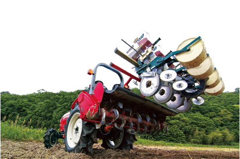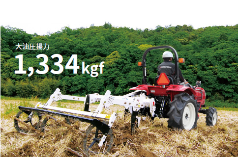 プラソイラ・多連施肥播種機・あぜ塗り作業も大油圧揚力でスムーズに作業できます。