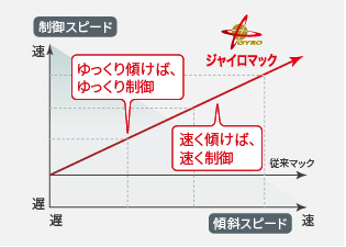 ジャイロマック搭載の新型GJなら傾き速度に合わせて制御スピードも最適にします。