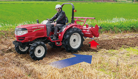 ハンドルを切るだけで自動で作業機が上昇するので、上げ忘れの心配がありません。