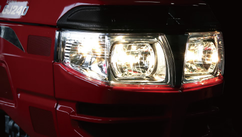 ヘッドライトは、配光に優れたマルチリフレクタランプを採用。独立したコーナーライトは左右広い範囲を明るく照らします。夜間や早朝の作業も安心。