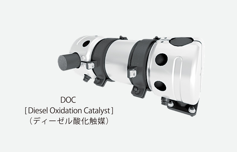 エンジン内の燃焼効率が向上したことで、DPFを使わずDOCのみで排ガス規制に適合しました。
