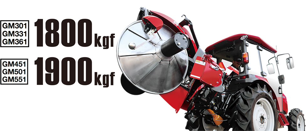大油圧揚力で大型作業機に対応し、作業の幅が広がります。