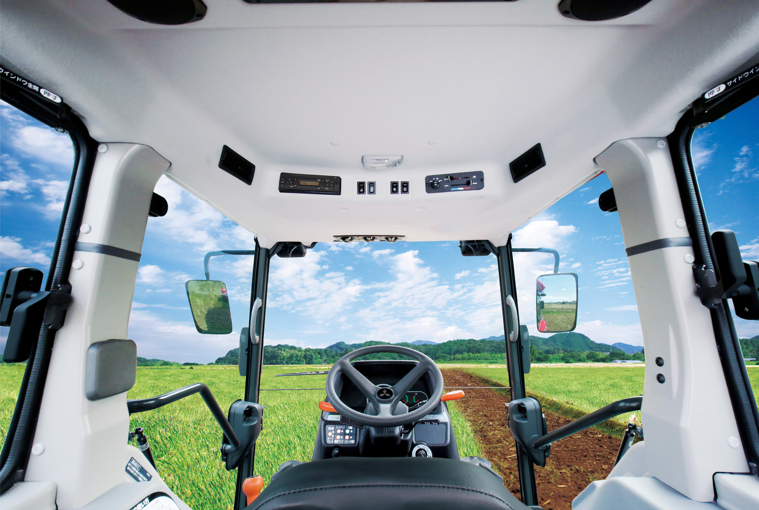 キャビン仕様には、高精度なうね作りをサポートするスマートアイドライブを装着可能。ステアリングホイール操作を補助する直進アシスト機能により、まっすぐできれいなうねを作ることができます。