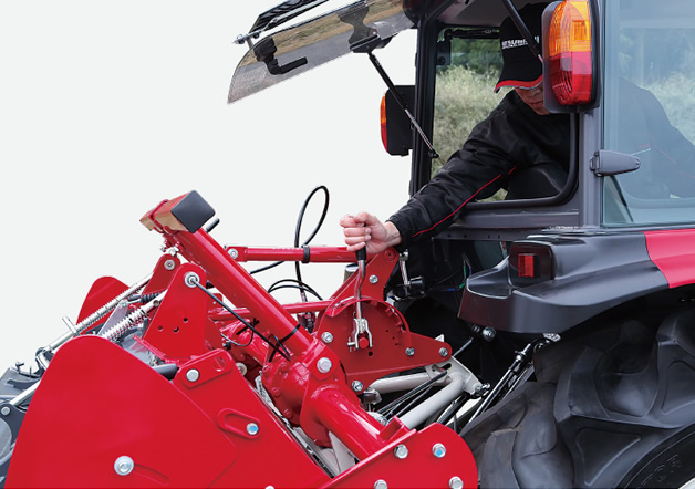 ロータリの脱着がワンタッチで行える、5Pスーパーヒッチを採用。配線を取外す必要もありません。