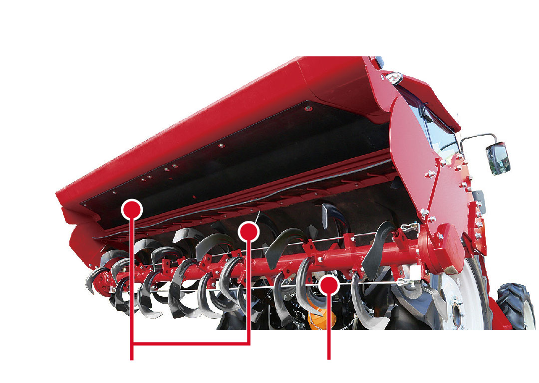 土の付着を抑え、馬力ロス、爪の摩耗を軽減できます。