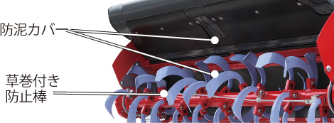 草、ワラの巻付きが少なく、草の絡みによる馬力ロスを軽減します。