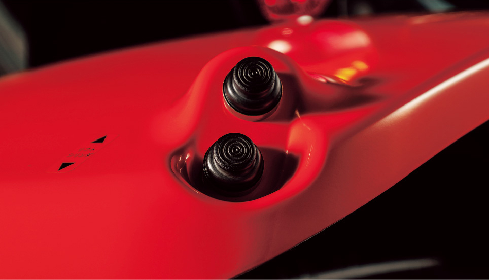 トラクタを降り、リアフェンダの外部ボタン操作で、3P上げ下げや水平シリンダ(J 仕様のみ)の伸縮が行えます。