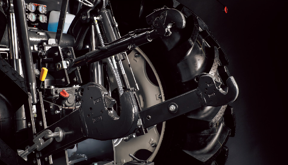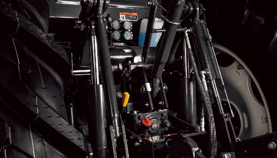 3点リンク昇降シリンダはメンテナンスが容易な外装式です。効率がよく、大きな油圧揚力が得られます。