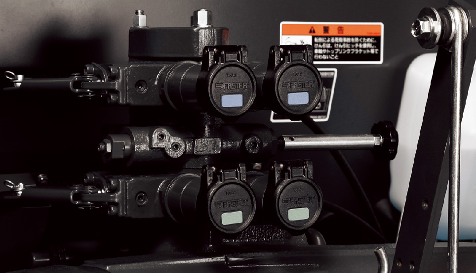 大きな油圧揚力や流量を確保しています。補助コントロールバルブは最大4速まで装着可能です。油圧オイルも効率よく使用でき、大型作業機の能力をフルに活かすことができます。