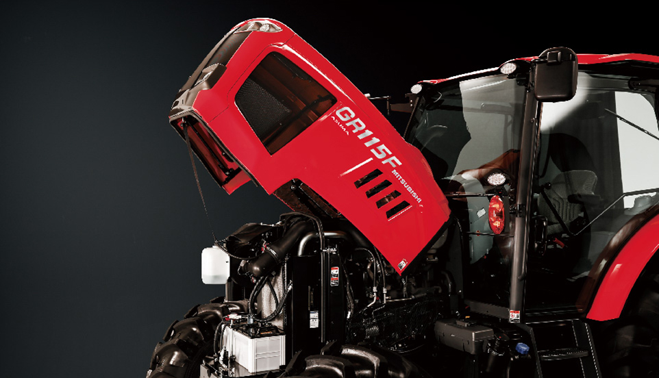 一体型で大きく開くボンネットは、ダンパー式で容易に開きます。メンテナンスが楽に行えます。