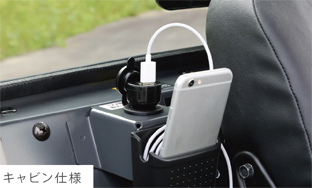 小物を入れるスペースを設けました。アクセサリー電源装備なので、スマートフォンなどの充電が可能です。 ※電源ソケット・USBケーブル・スマートフォンは含みません。