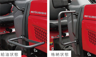 工具レスで安全フレームを折りたたむことができ、格納時に便利です。