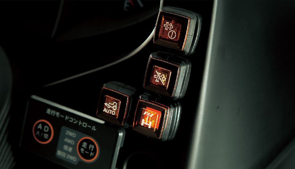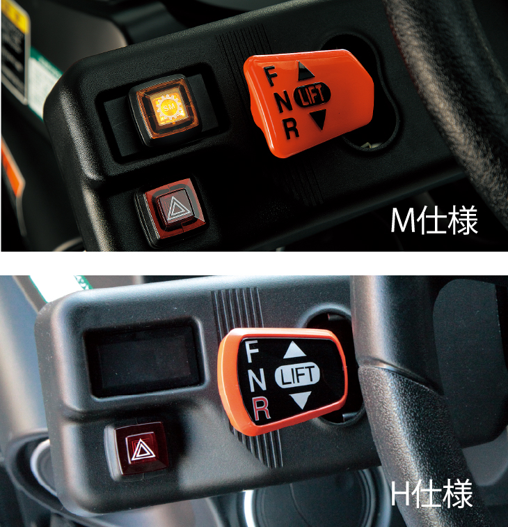 前輪は、ボタンスイッチで手軽に「入・切」できる前輪デフロック。高負荷作業で直進性、けん引力が向上します。