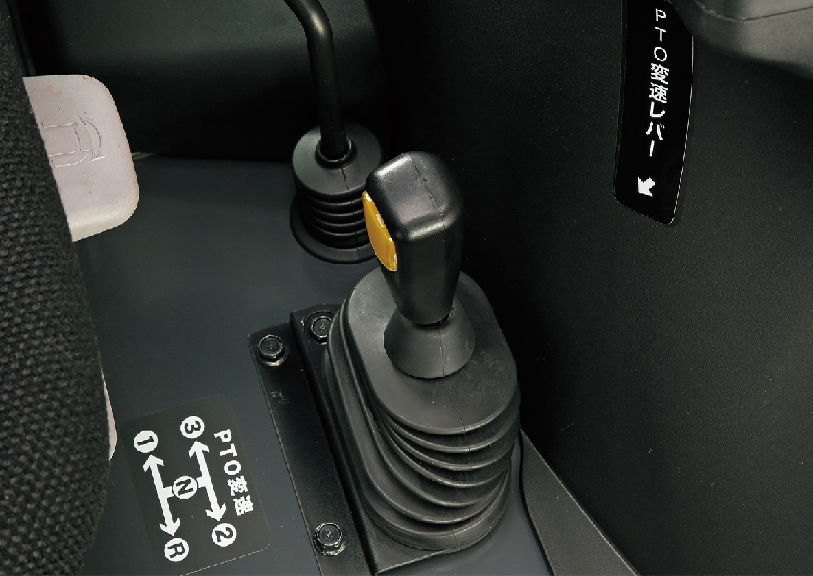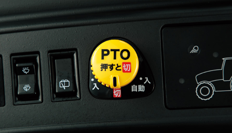 手元のスイッチでPTOの「入・切」ができるので、安心してPTO回転の操作が行えます。