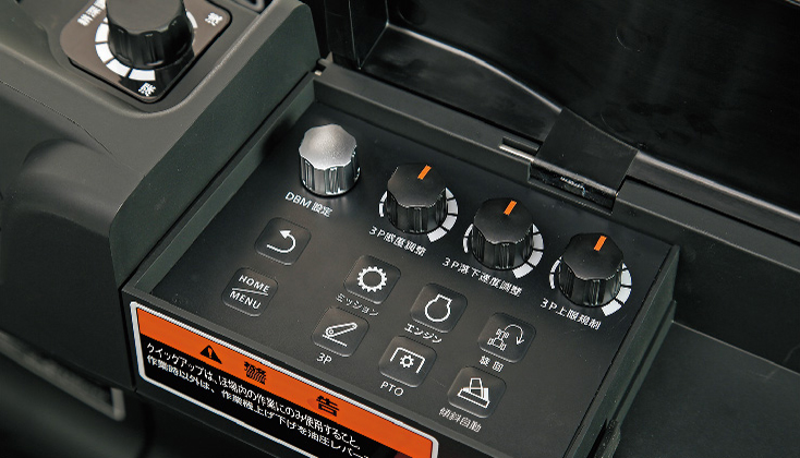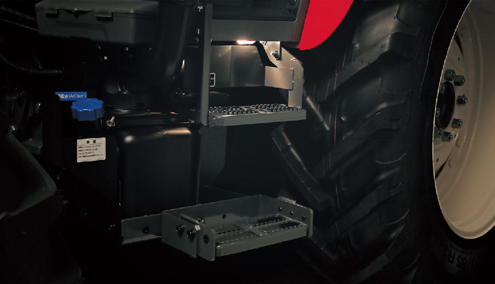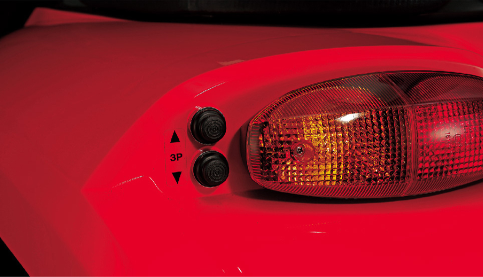 リヤフェンダの外部ボタン操作で、3点リンクの昇降(全ての仕様)、傾斜自動シリンダーの伸縮が外から行えます。