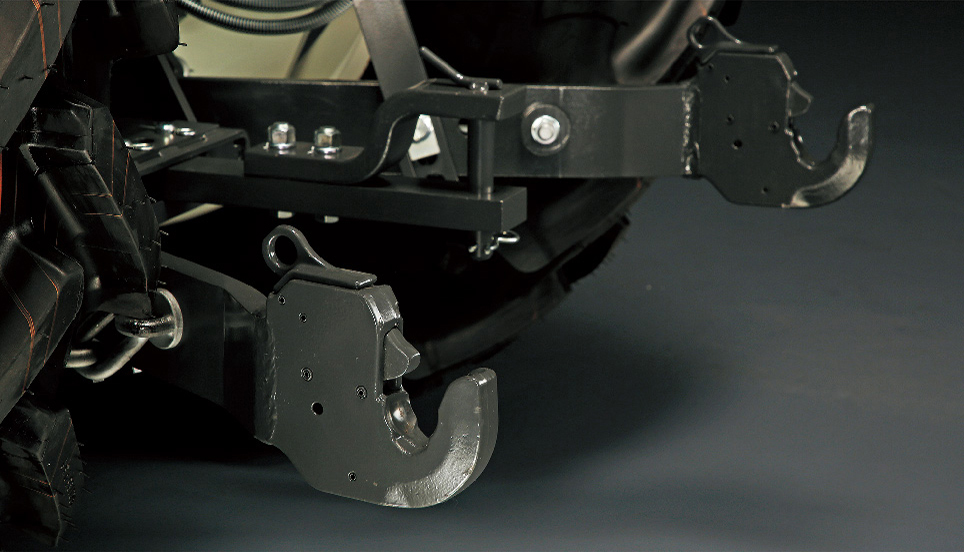 クイックフック式のロアリンクを標準装備。短時間でインプルメントの着脱を簡単に行うことができます。