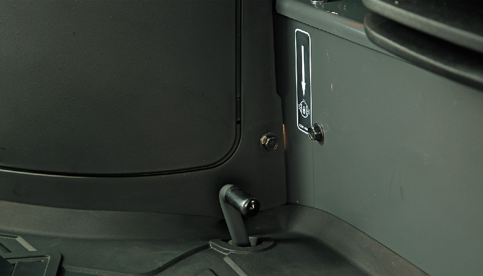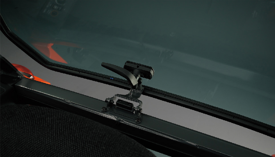 リヤハッチは半開きで固定可能。大型のインプルメント装着時など、リヤハッチを全開にできない場合でも、キャビン内の換気ができます。