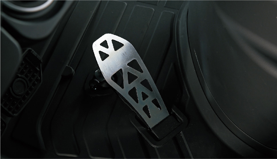 大型のアーチ状ペダルは操作しやすく、安定したペダルコントロールができます。床から直で出ているので、足を引っかけるなどのリスクも低減できます。