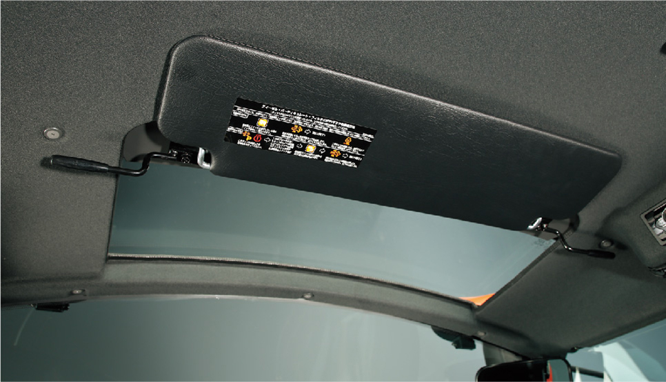 サンルーフを標準装備。ローダ作業時などでの視界性がアップします。また、太陽熱を遮断するスライド式サンシェードは、太陽の直射から目を守り、視界を確保するサンバイザを兼ねています。