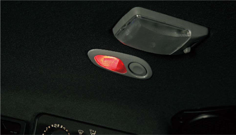 夜間でも視認性を確保できる右側の操作スイッチ・レバー類を照らすライトを装備。夜間の誤操作を防ぎます。
