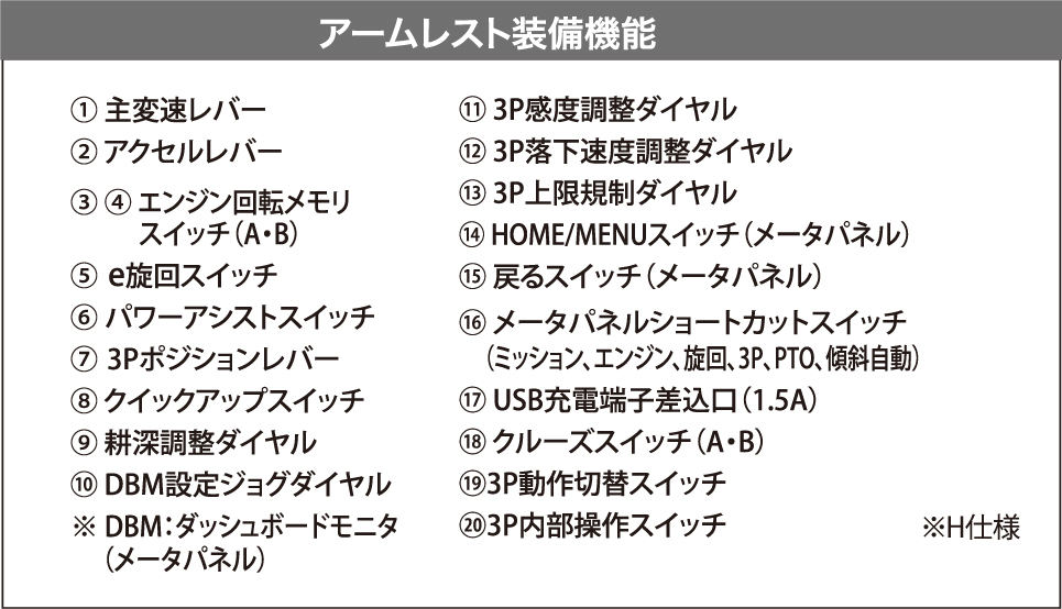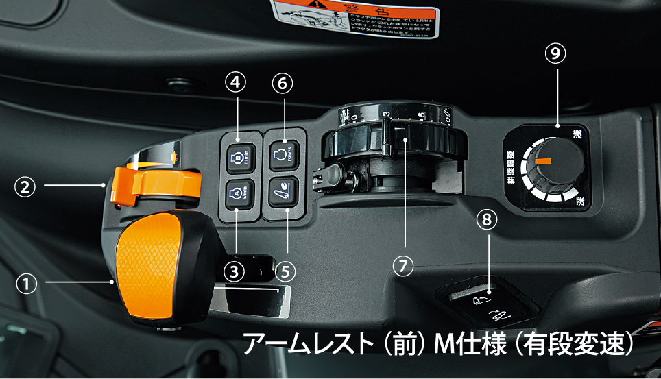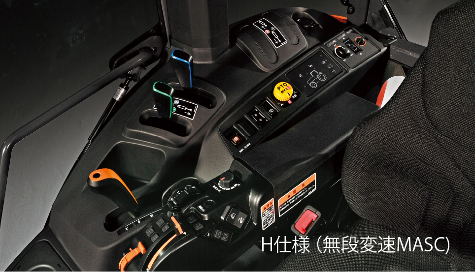 操作頻度の多いレバー・スイッチ類を手元に集約しているので、操作しやすく作業効率が上がります。
