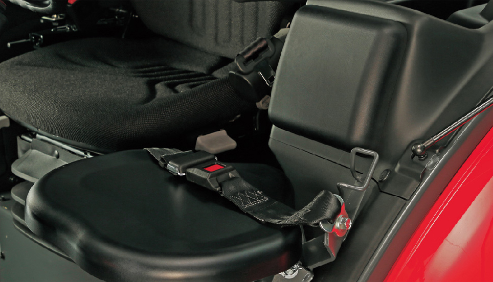 キャビン内に指導者用のシートが装着でき、不慣れなオペレーターへの指導が楽に行えます。※道路走行時の二人乗り禁止。